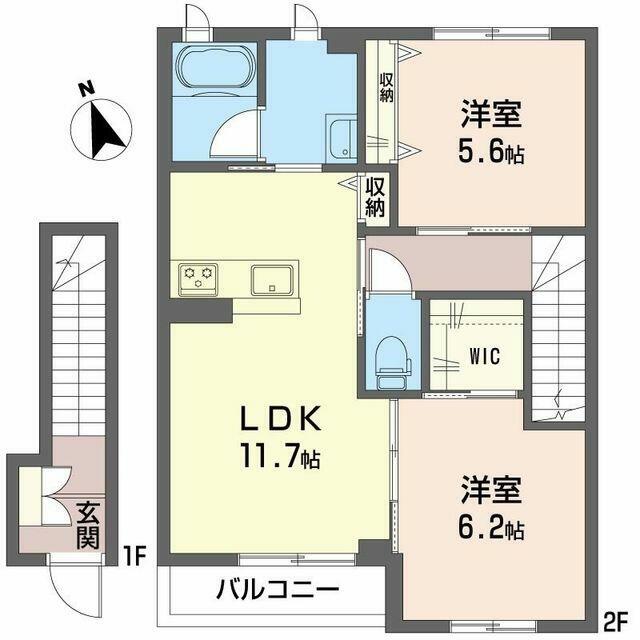 | 専有面積 | 61.21㎡ | 階建/階 | 2階建/2階 |